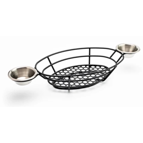 Çift Sosluklu Büyük Oval Ekmek-Patates Sunum Sepeti - 20 Adet - Alba