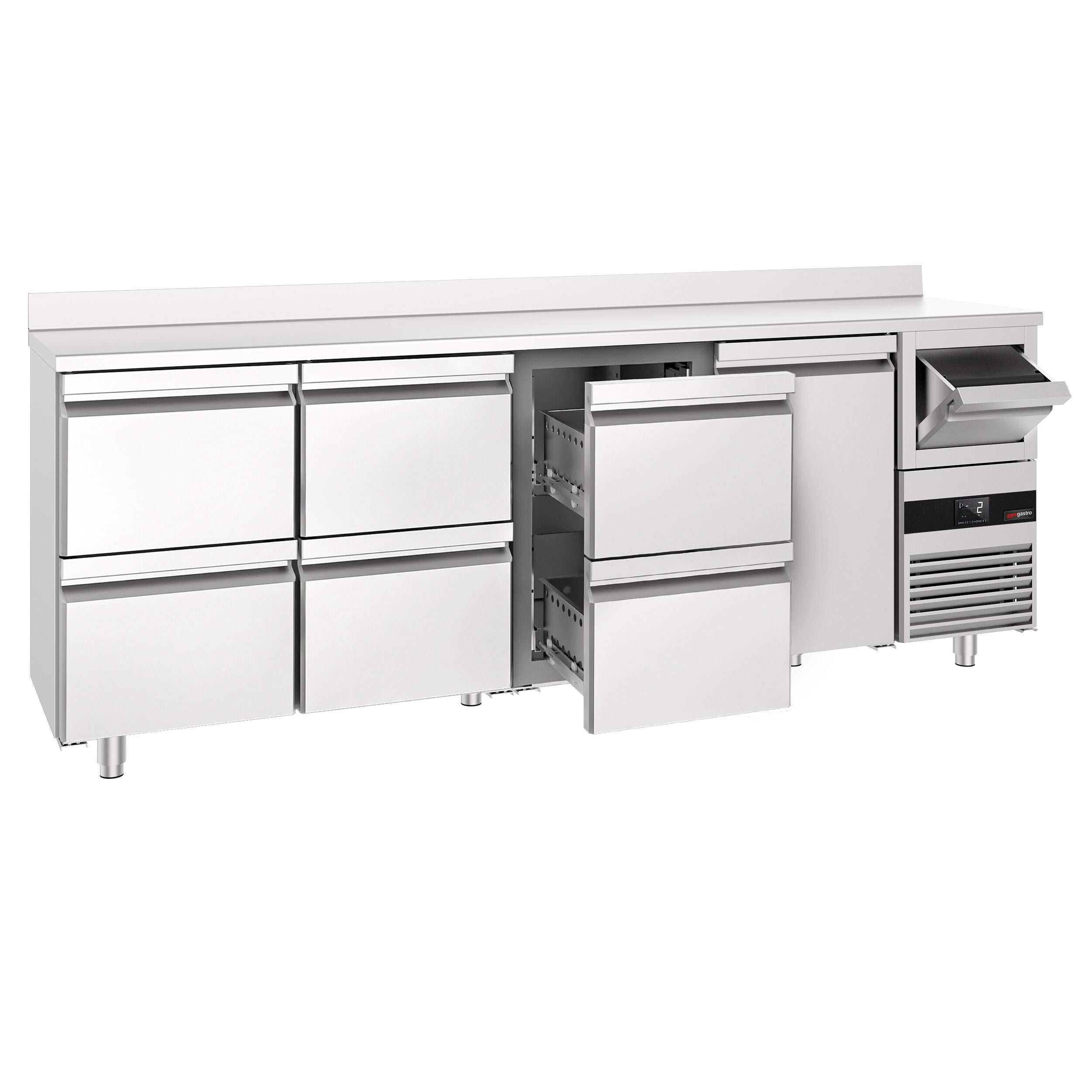 Bar Tipi & Meşrubat Buzdolabı - 2690x600mm - 1 Kapılı, 6 Çekmeceli, Sırtlı & Telve Kovalı
