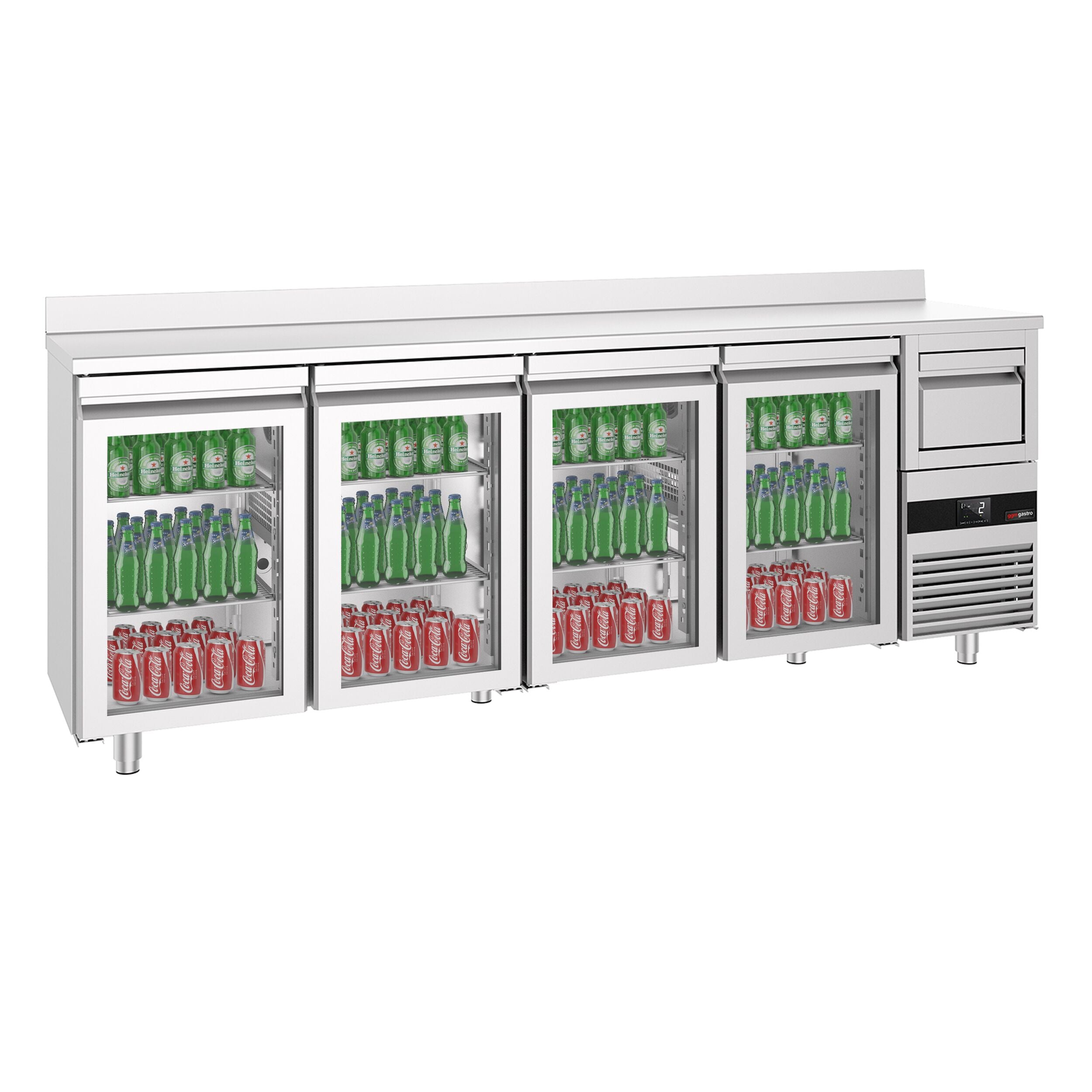 Bar Tipi & Meşrubat Buzdolabı - 2690x600mm - 4 Cam Kapılı, Sırtlı & Telve Kovalı