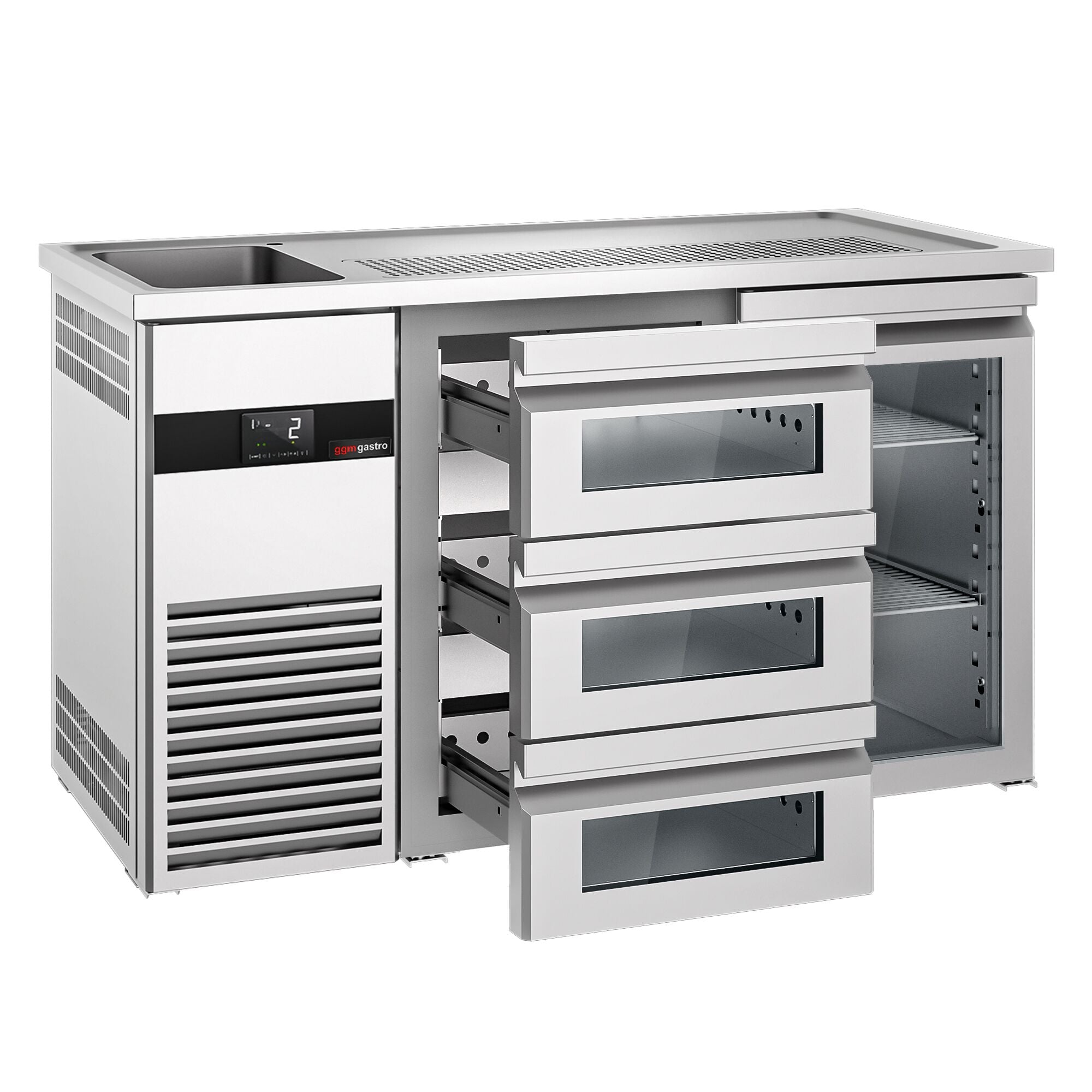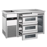 Bira Tezgahı - 1550x700mm - 1 Cam Kapı ve 3 Cam Çekmeceli