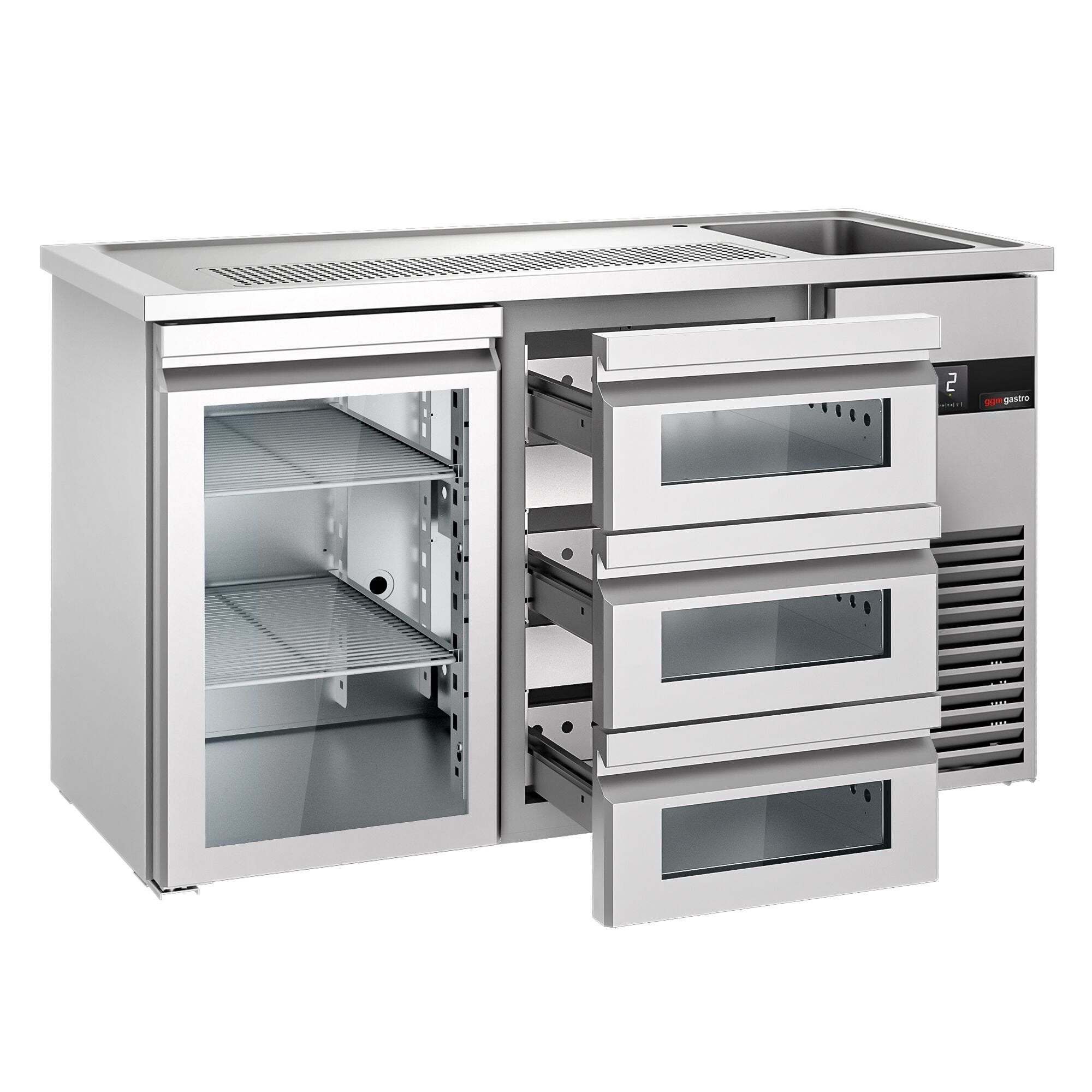 Bira Tezgahı - 1550x700mm - 1 Cam Kapı ve 3 Cam Çekmeceli