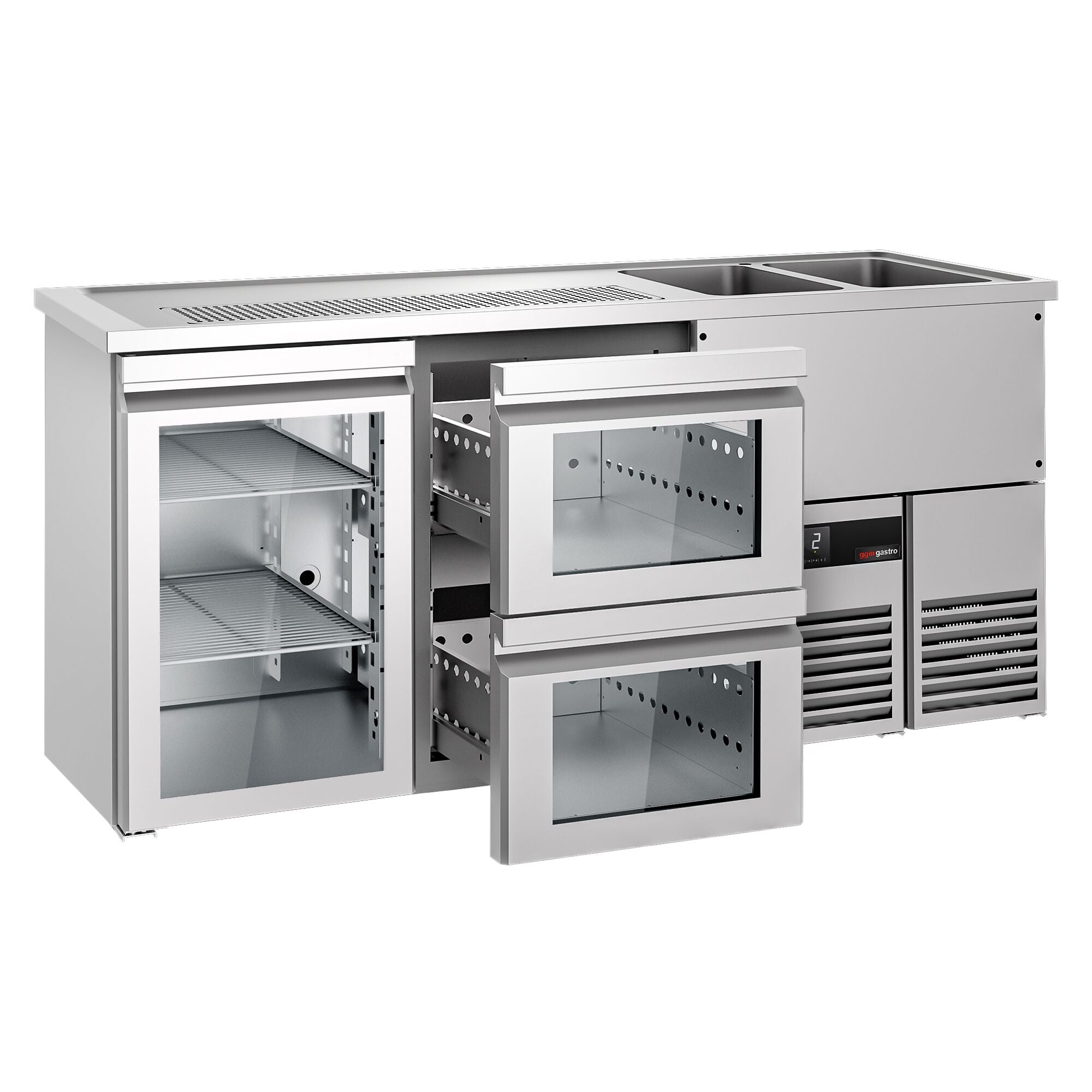 Bira Tezgahı - 1950x700mm - 1 Cam Kapı ve 2 Cam Çekmeceli
