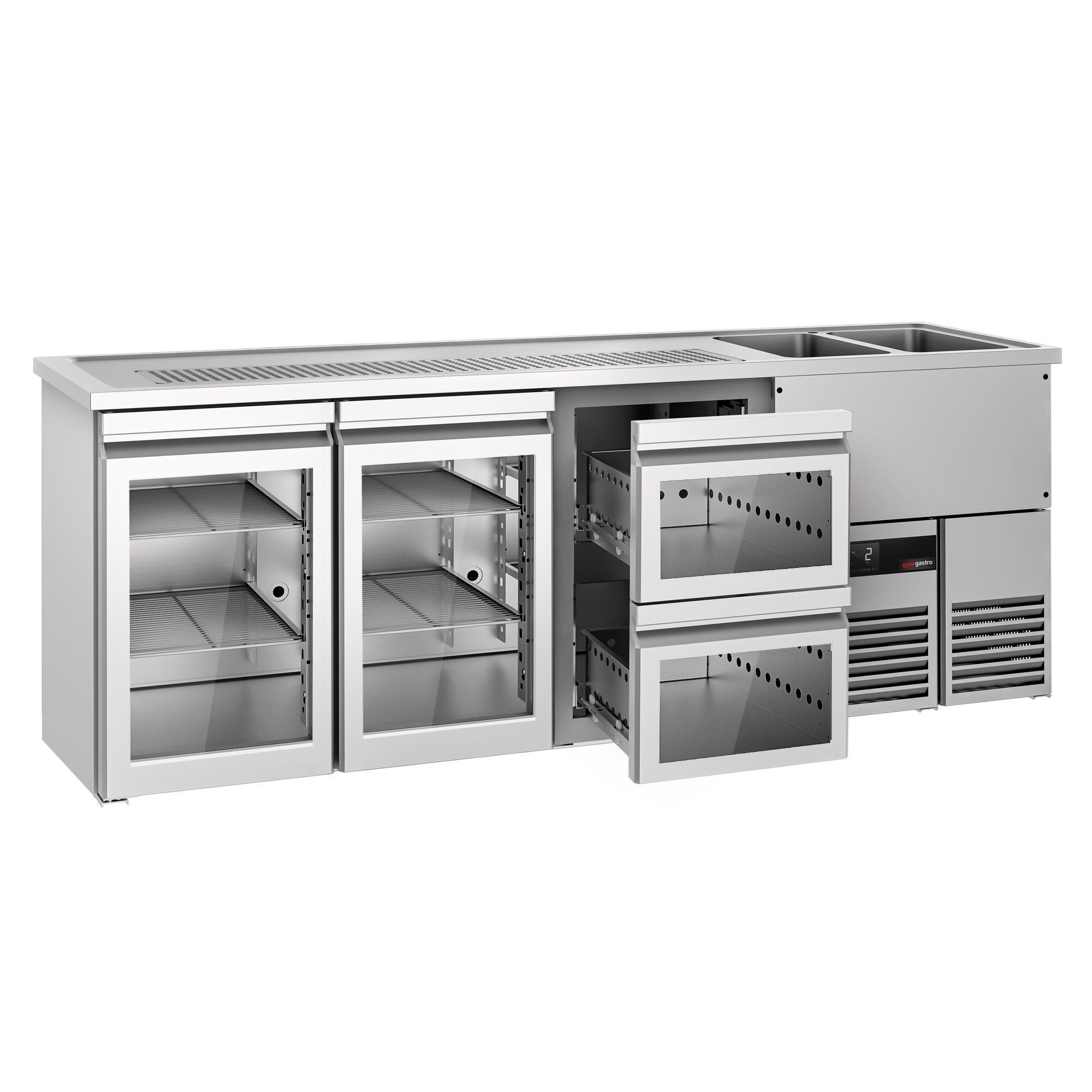 Bira Tezgahı - 2500x700mm - 2 Cam Kapılı & 2 Cam Çekmeceli