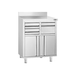 Dolaplı Çalışma Tezgahı - Kahve Makinesi için - Telve Kovalı, 2 Çekmeceli, 2 Kapılı & Sırtlı - 800x600mm