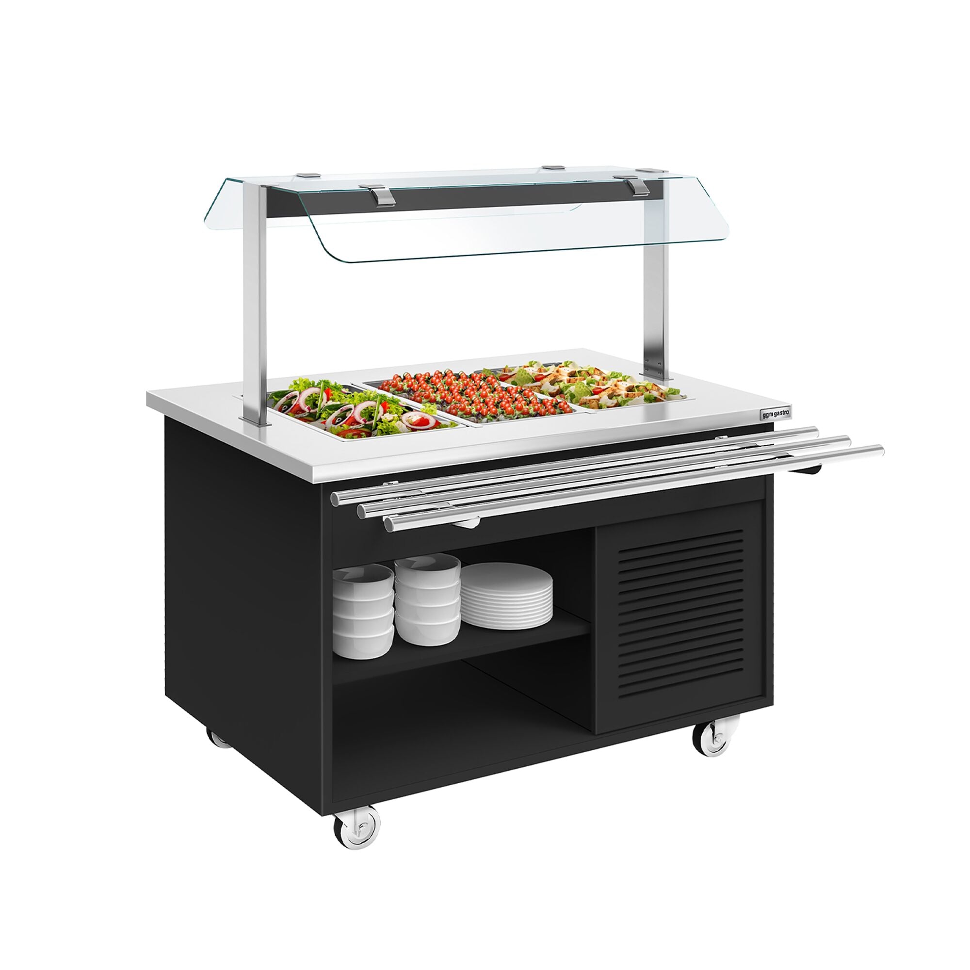Tekerlekli Soğuk Açık Büfe Tezgahı DANZIG - 1300 mm - 3x GN 1/1 için - Tepsi Kızaklı - Siyah