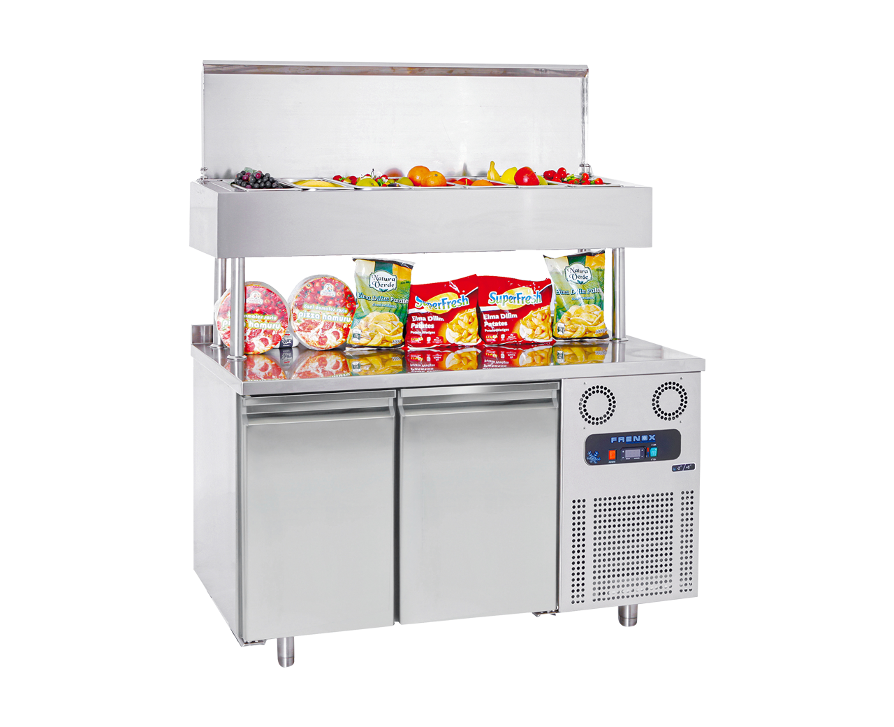 Yatay, Tezgah Tip, Yükseltilmiş Make Up, Hazırlık Buzdolabı - Paslanmaz Çelik - 2 Kapılı